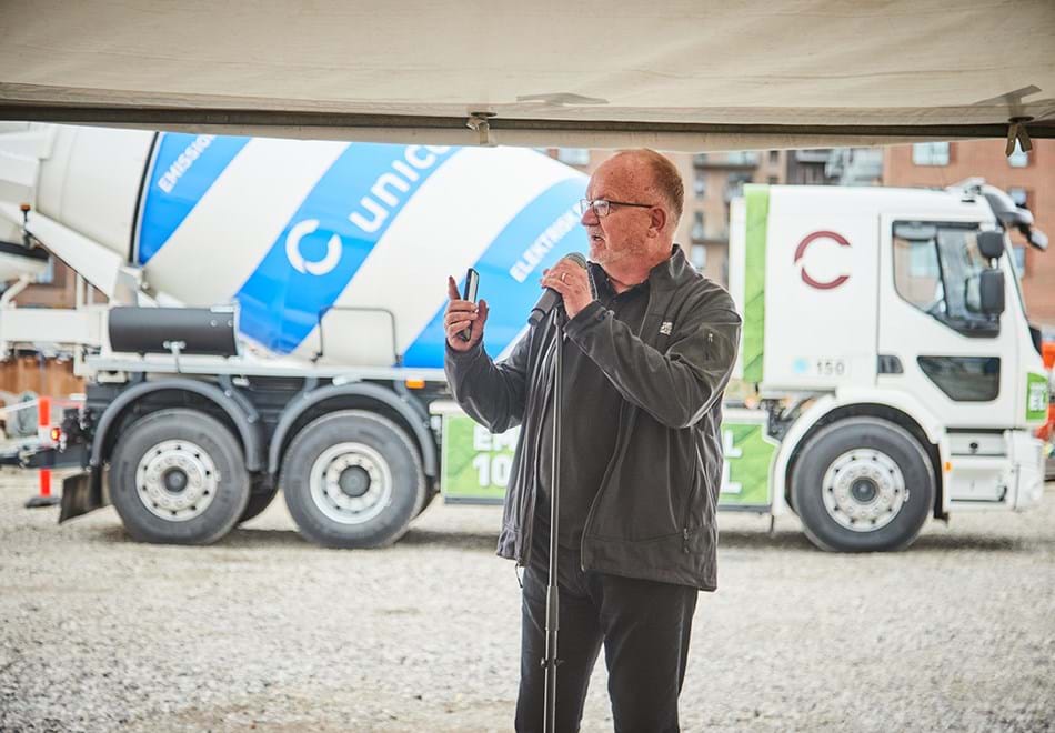 - Vi er enormt stolte over at kunne præsentere verdens første serieproducerede elektriske betonbil på de danske veje og byggepladser. Som Danmarks største leverandør af færdigblandet beton er vi hele tiden på jagt efter nye initiativer, der kan bidrage til et mere miljøvenligt byggeri, og her bliver den elektriske betonbil fuldstændig afgørende for fremtidig bæredygtig distribution af færdigblandet beton, der er det mest brugte byggemateriale i verden, forklarer Jan Søndergaard Hansen, direktør i Unicon.