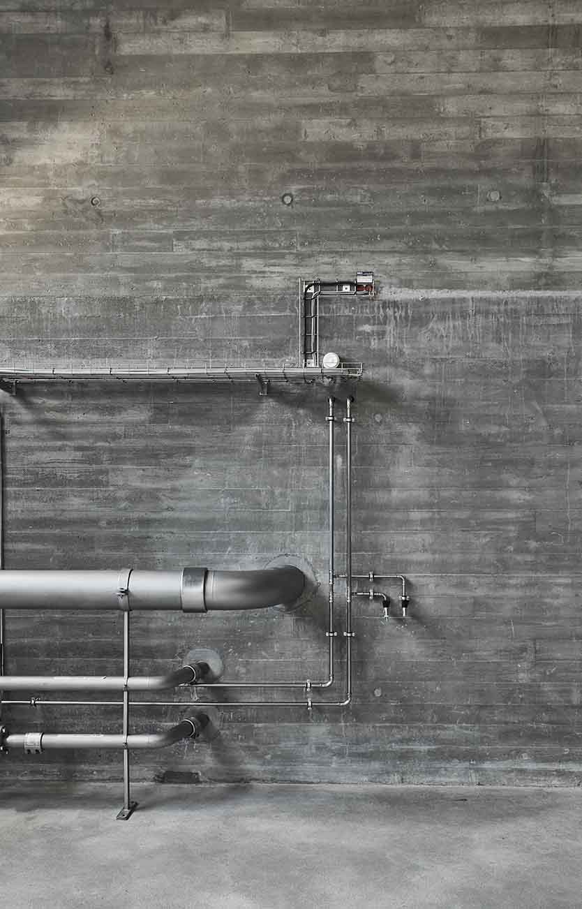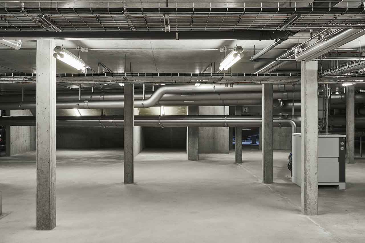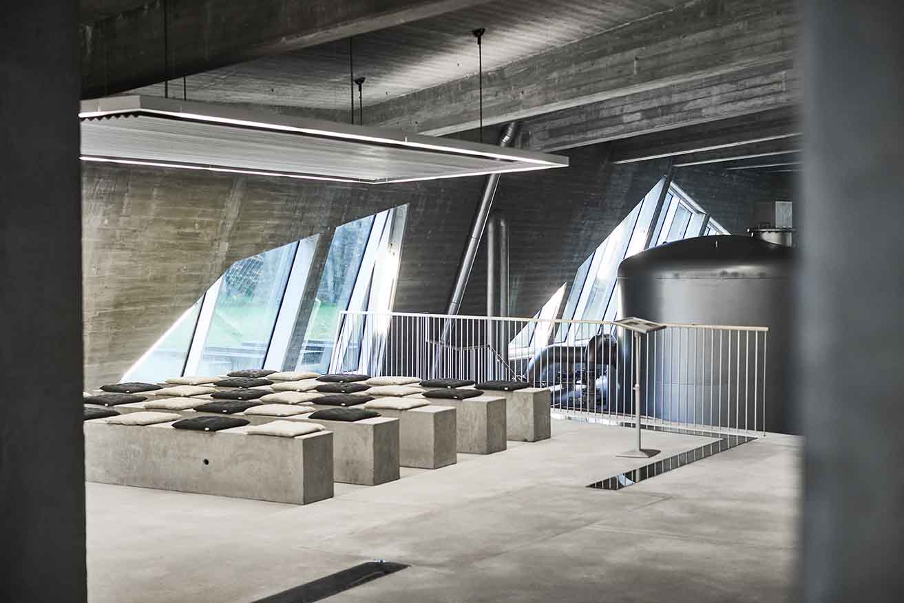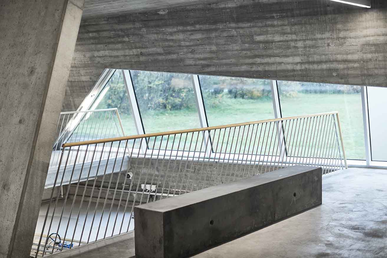 Den indvendige del af bygningen, viser betonen frem på flotteste vis.